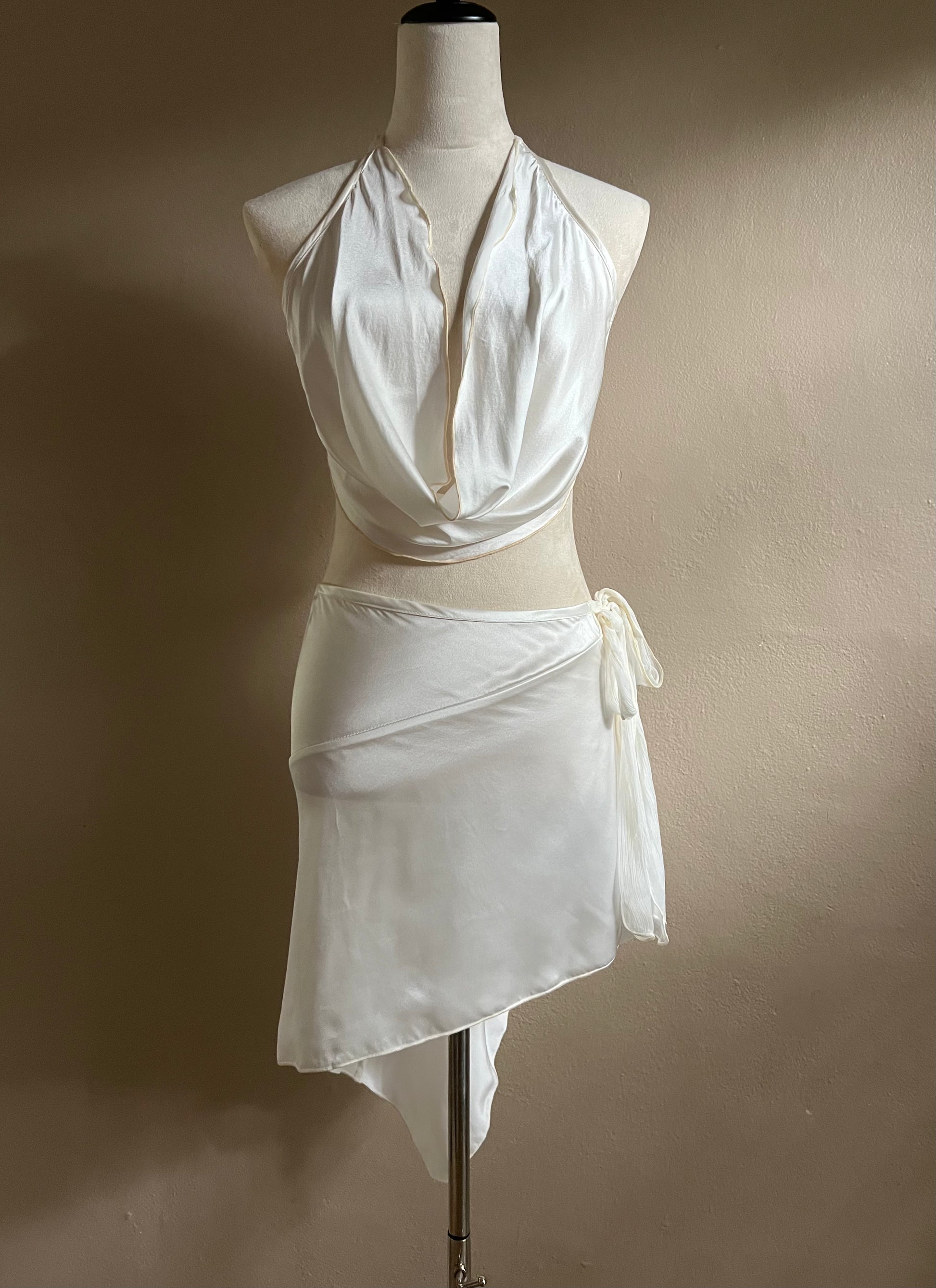 The Angled Skirt is a multi-useful piece, featuring an asymmetrical cut and adjustable tie that allows for a variety of styling options. Wear as a skirt or as a top in various ways-- the more creative you get with it, the better. The skirt's adjustable tie allows for ultimate comfort and customization.