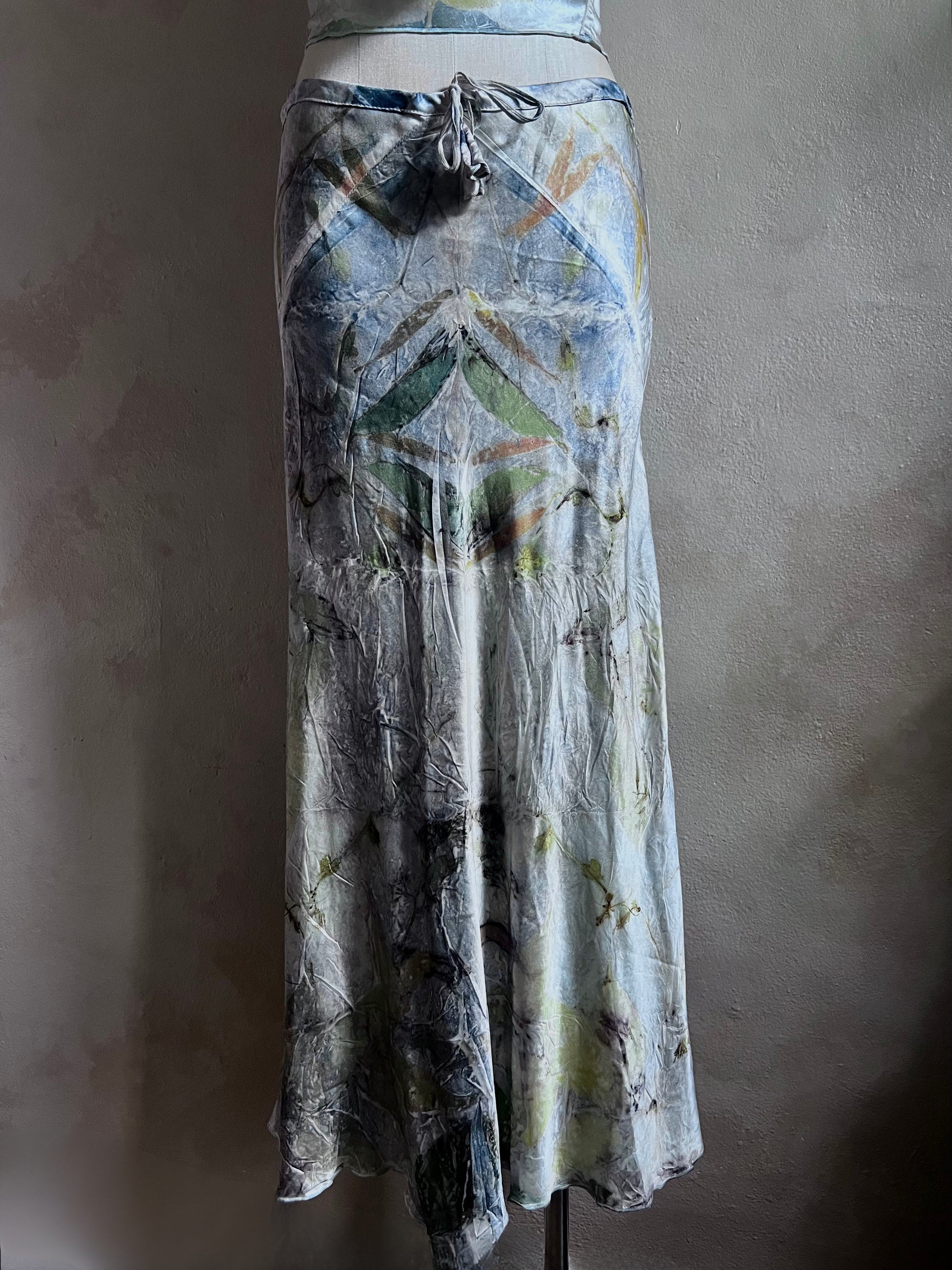 The Verona Skirt is one-of-a-kind, effortlessly elegant, and multi-useful. Featuring a drawstring waistline, delicate side slits, and cut-on-the-bias, this piece lays naturally to each wearer's unique shape. May be styled as a skirt or as a dress.